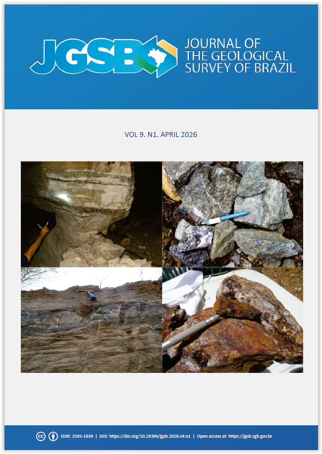 By submitting this manuscript for evaluation, the authors are aware of the CC-BY Creative Commons license. In the case of manuscript approval, the author responsible for the manuscript (corresponding author), hereinafter referred to as CEDENTE (ASSIGNOR), hereby assigns and transfers to CPRM-Serviço Geológico do Brasil, holder of the JGSB, free of charge, on his behalf and on behalf from all co-authors, the right of the first publication. This includes the rights of editing, publication, translation into another language and reproduction by any process, worldwide, today and in the future.